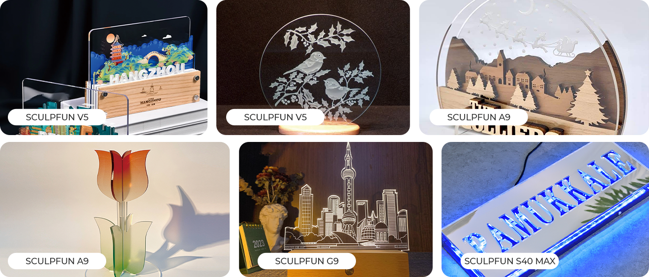 Découvrez de véritables créations des utilisateurs de SCULPFUN — en bois, cuir, métal, acrylique et plus encore.