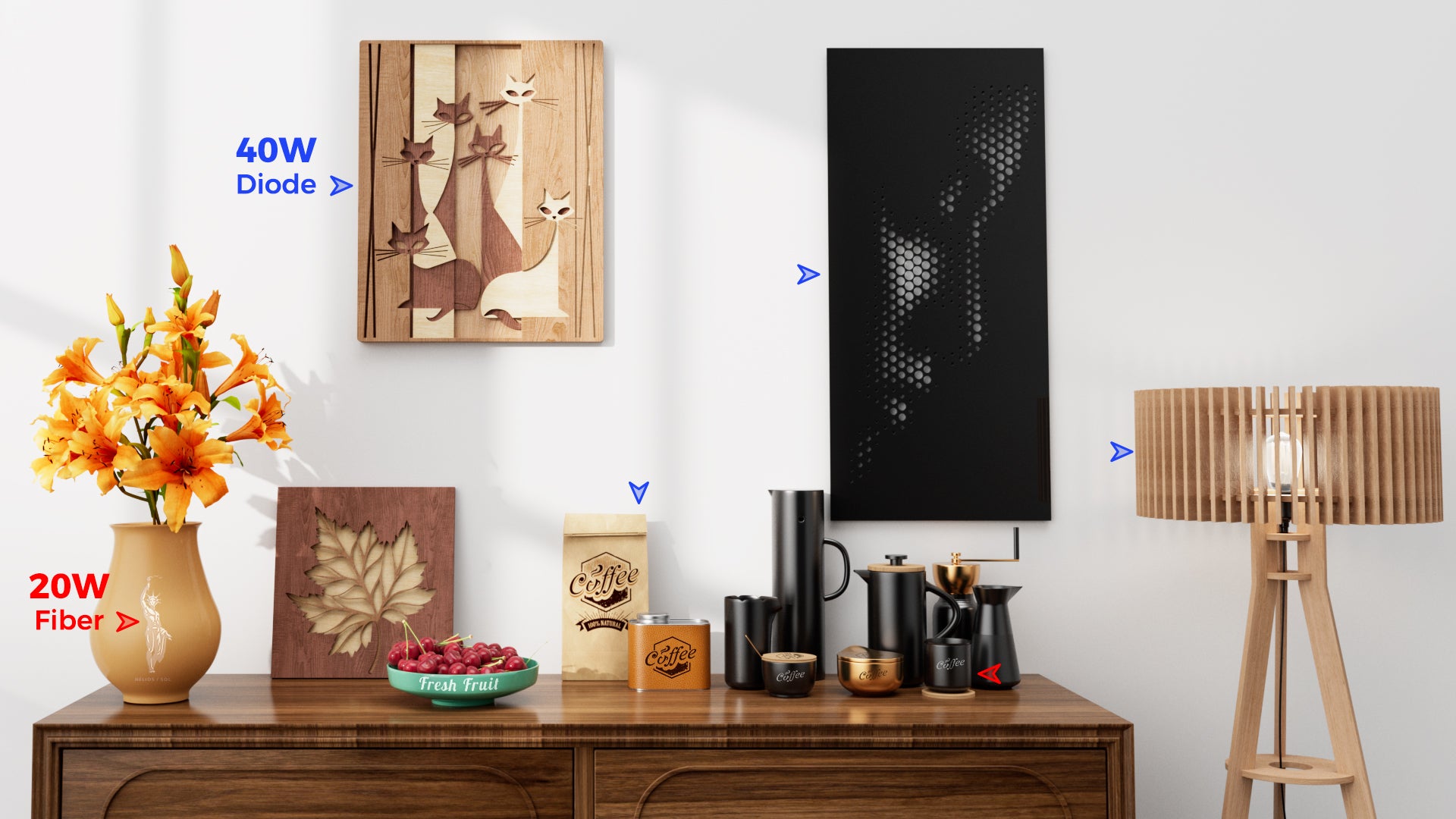 Équipé d’un laser fibre de 20W et d’un laser diode de 40W, l’A9 Ultra Dual traite 350+ matériaux avec une fluidité exceptionnelle. Associé à une zone de travail ultra-large, il libère un potentiel créatif infini et repousse les limites de chaque projet.
