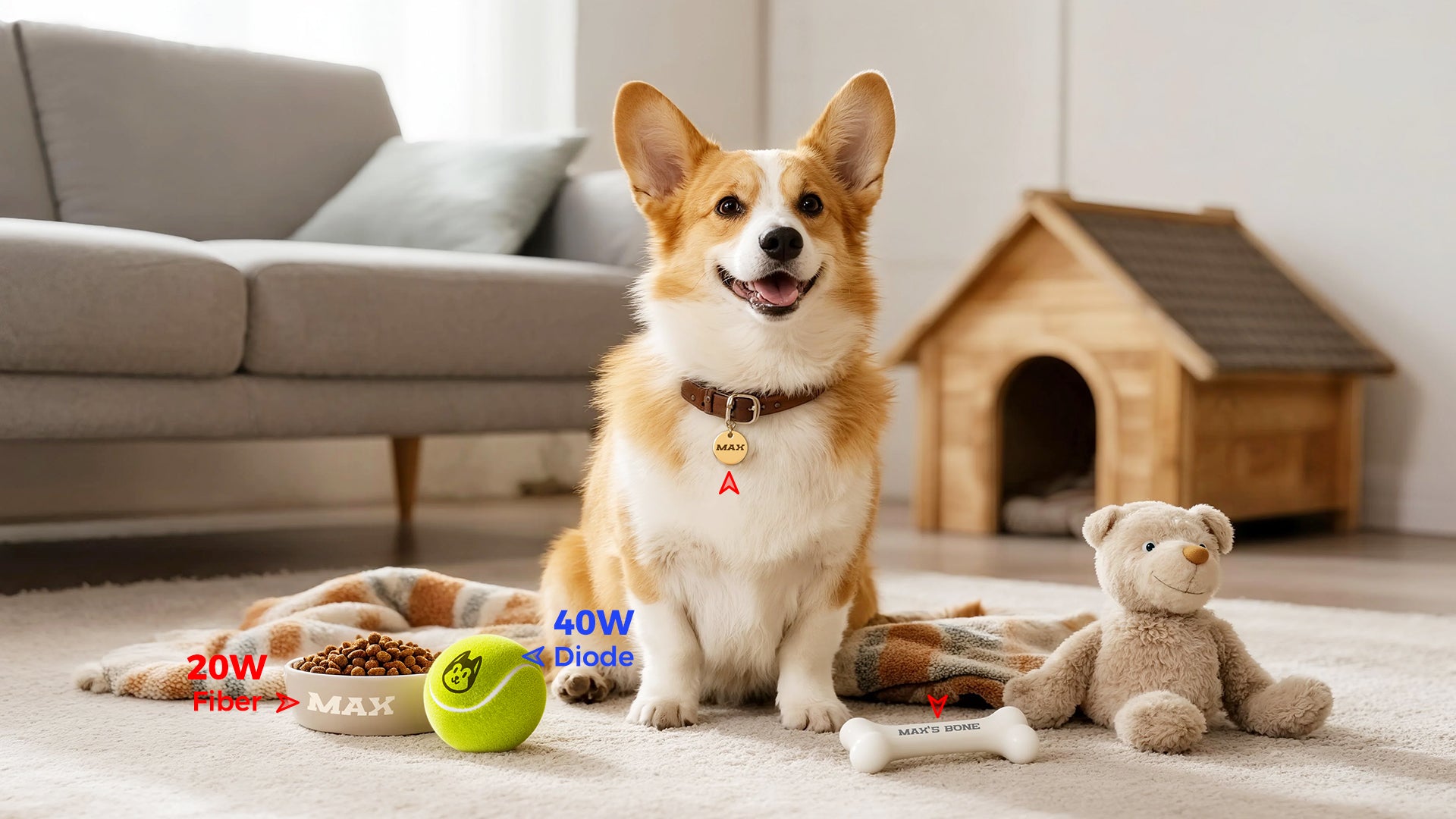 Par rapport à un laser infrarouge 1064 nm de 2W, la puissance de 20W est bien plus élevée, produisant des gravures métalliques plus profondes et plus foncées avec des résultats supérieurs.